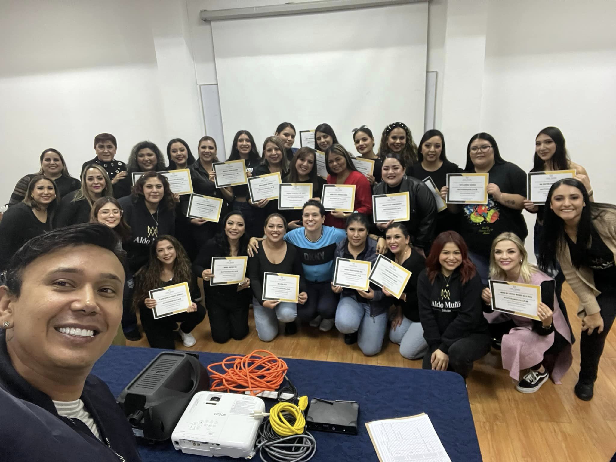 El curso de automaquillaje presencial está diseñado para que aprendas toda la técnica de automaquillaje de Aldo Muñiz y puedas realizarlo por ti misma al término del curso.