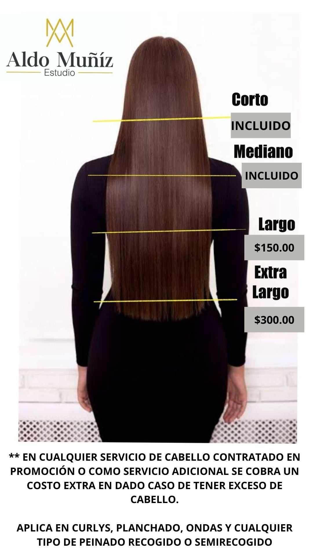 EN CABELLOS EXTRA LARGOS SE COBRA UN COSTO ADICIONAL DEPENDIENDO EL LARGO, REVISAR IMAGEN FINAL O SOLICITARLA EN TU CITA.